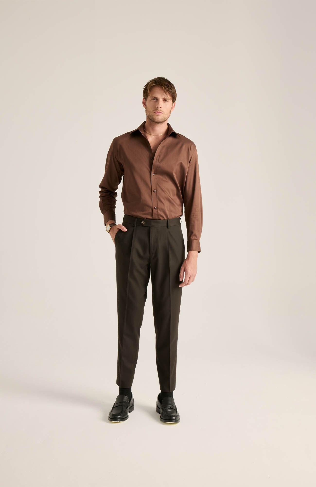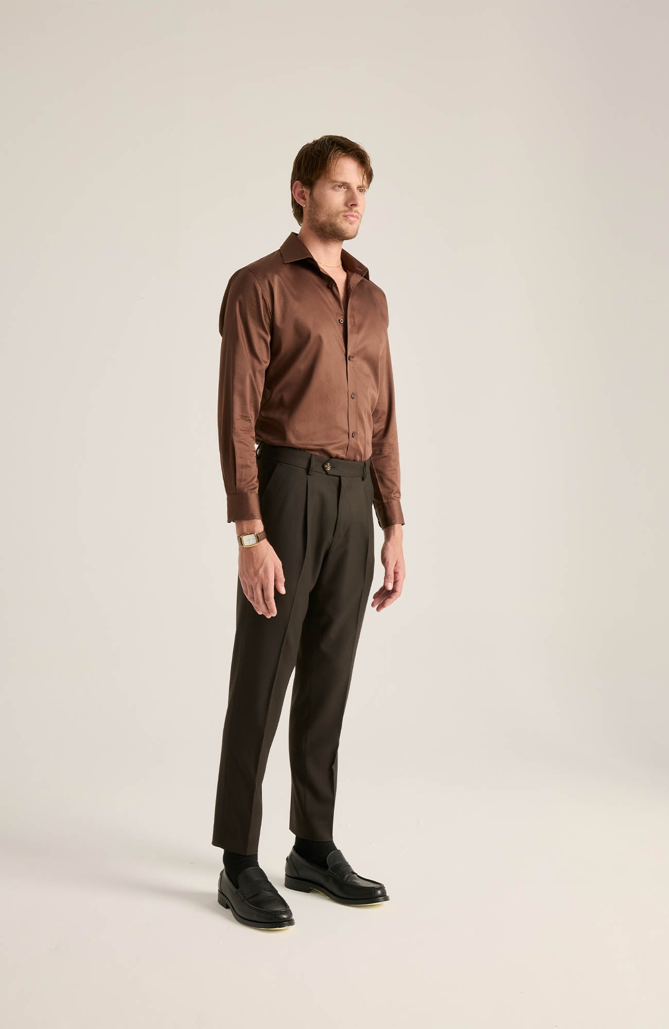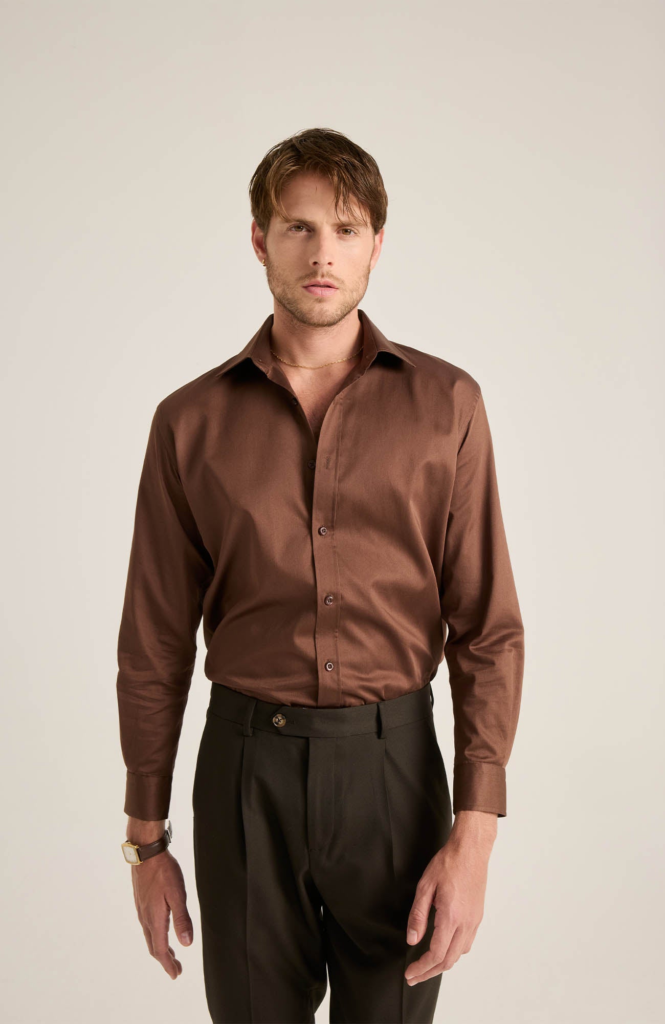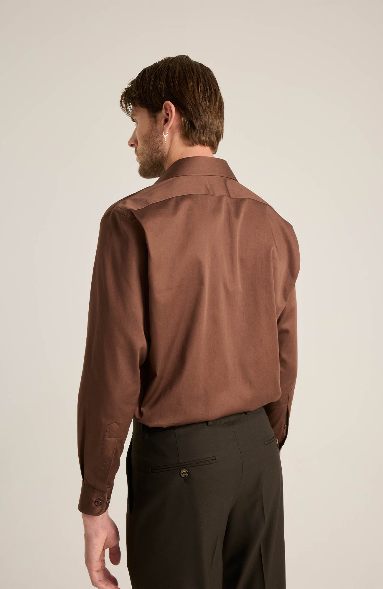 Vincent Koyu Kahve Saten Gömlek